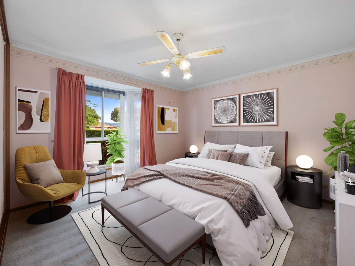 To the left of entry is the spacious master bedroom which features a wonderful bay window with fully electric auto roller shutters along with a floor to ceiling built in robe.